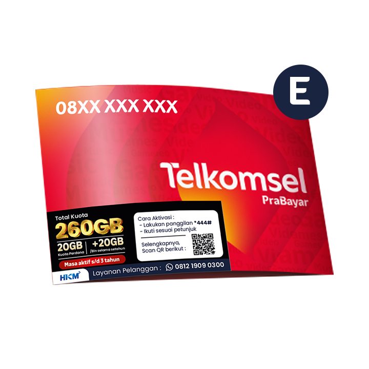 Kartu Perdana Spesial Telkomsel – 10 Digit G Nomor Telkomsel 10 digit Kuota 260Gb selama 1 Tahun (40Gb di bulan